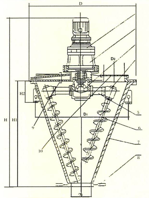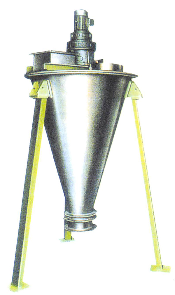 (4)the rised material drops under its sole weight,the kinds of motions effect convection,shearing,siffusion in the cone,thus quich and even mixing can be achieved.
